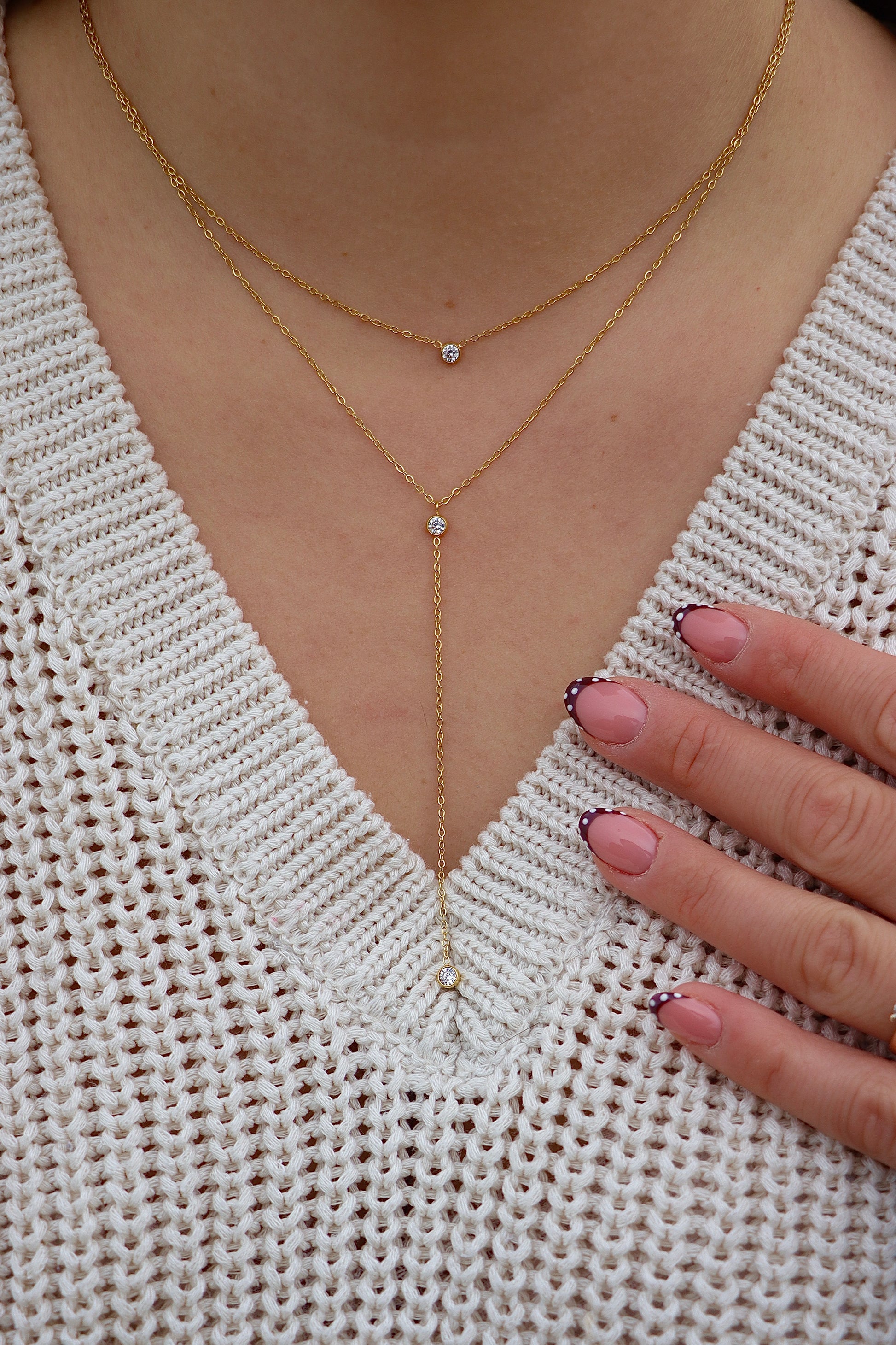 Son design en Y allonge naturellement la ligne du cou et met en valeur la peau grâce à une chute délicate. De petits diamants scintillants viennent orner la chaîne, ajoutant une touche de lumière subtile sans être ostentatoire.