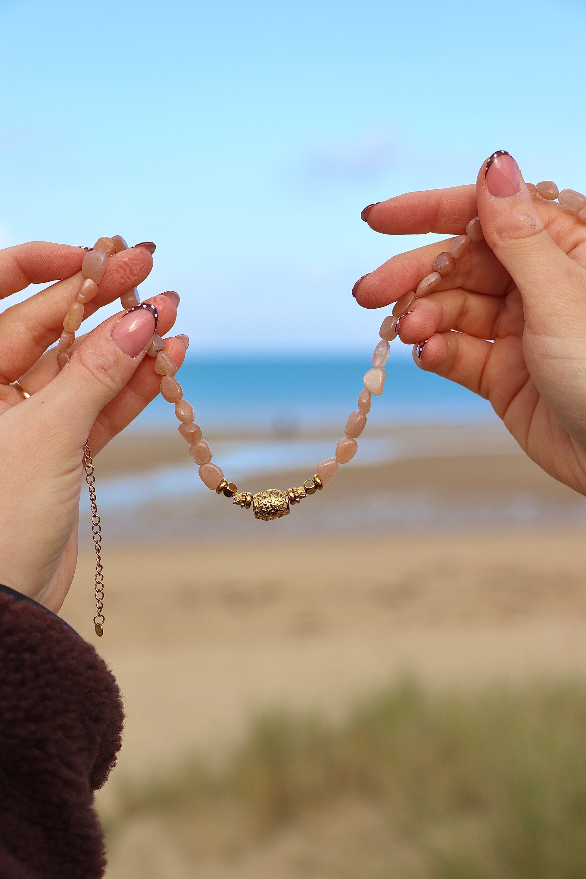 Chaque pierre est unique, offrant un design organique et authentique qui se marie parfaitement avec des tenues bohèmes, naturelles ou plus sophistiquées.