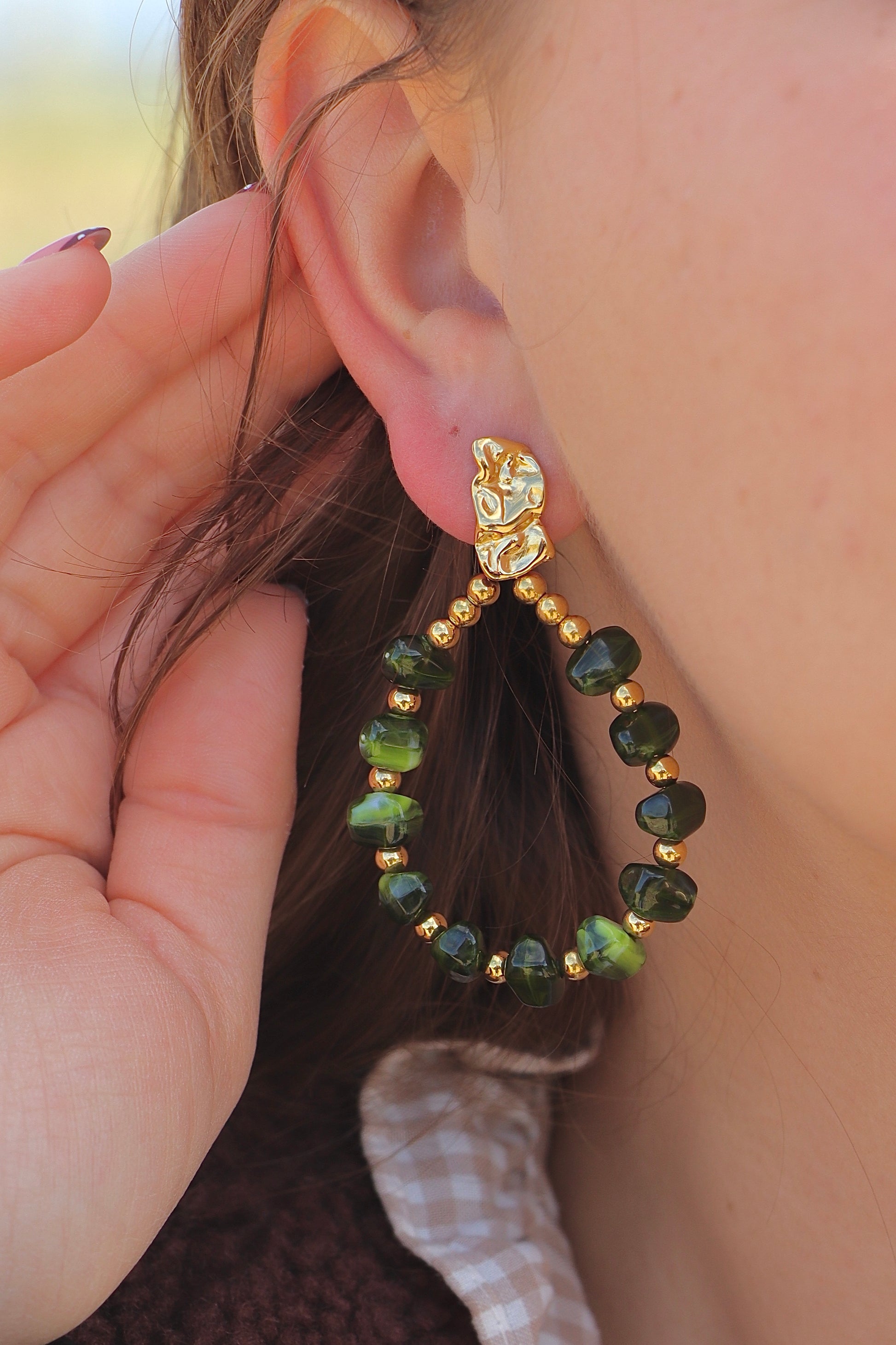 Apportez une touche de fraîcheur et d’élégance avec ces boucles d’oreilles pendantes ornées de pierres vertes.