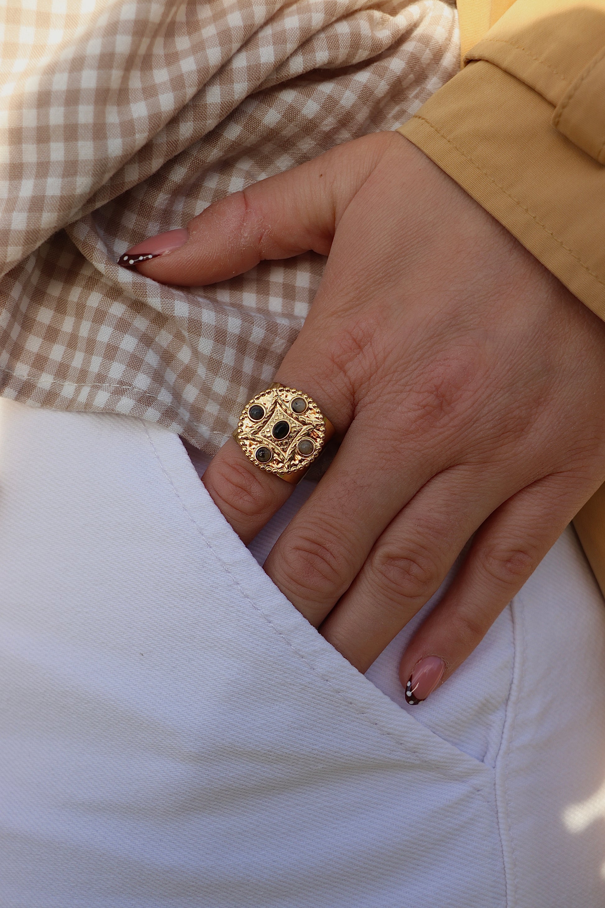 Que ce soit pour une tenue de soirée, un événement spécial ou simplement pour compléter votre look quotidien, cette bague est un bijou authentique et reflète votre personnalité.