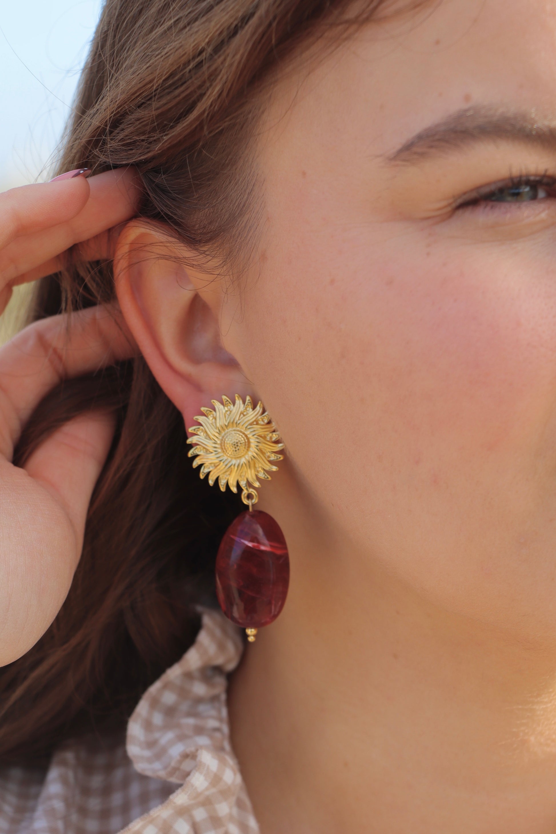 Sublimez votre style avec ces boucles d’oreilles Tera ornées d’une grosse pierre naturelle.